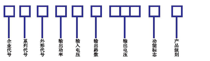 七、輸出電壓:第一位主回路電壓,第二、三位為輔回路電壓,如兩組對(duì)稱時(shí)則用一位數(shù)字表示。